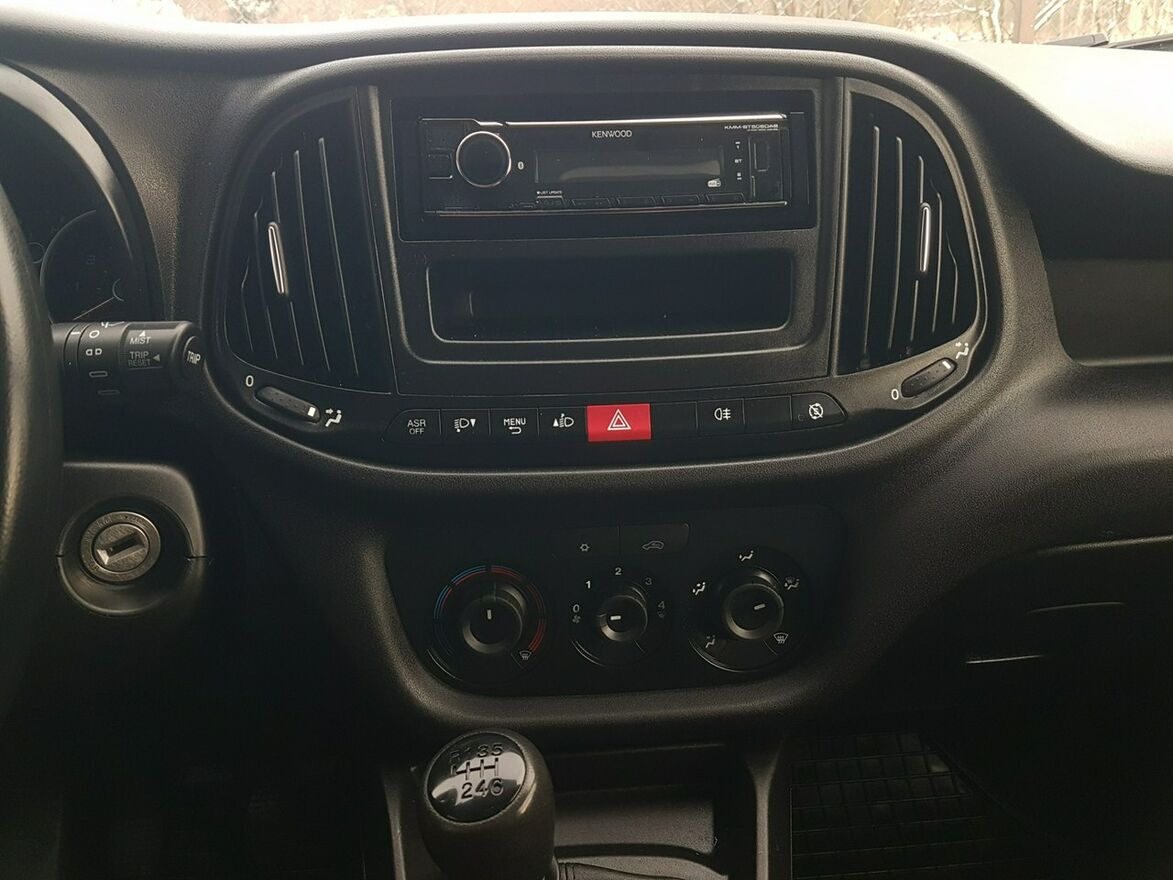 Klimatyzacja. Wspomaganie kierownicy. Centralny zamek. Immobilizer. ABS. ASR. Komputer pokładowy. Poduszka powietrzna kierowcy. Radio Kenwood usb, aux + Bluetooth. Elektryczne szyby. System start/stop. Obrotomierz. System kontroli trakcji. System autoclose. Parktronik – czujniki parkowania tył. Regulacja położenia kierownicy. Regulacja wysokości świateł. Regulacja wysokości pasów bezpieczeństwa. Zegarek. Termometr zewnętrzny. Schowki w bocznych drzwiach. Drzwi boczne przesuwne. Drzwi tył skrzydełkowe. Uchwyty do mocowania ładunku. Przestrzeń bagażowa – paka wybita dół + boki. Oświetlenie przestrzeni bagażowej. Przegroda przestrzeni bagażowej. Pełnowymiarowe koło zapasowe. Schowki w desce rozdzielczej. Kierunkowskazy w lusterkach. Automatyczny włącznik świateł - światła jazdy dziennej. Hak. Koła R16C. Atermiczne szyby. Trzecie światło stop.