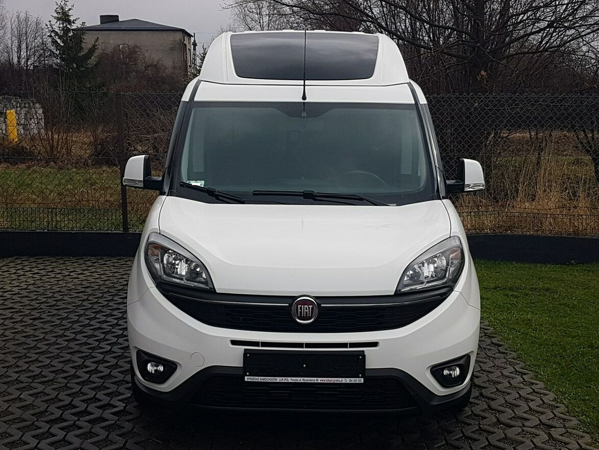 Klimatyzacja. Wspomaganie kierownicy. Centralny zamek. Immobilizer. ABS. ASR. Komputer pokładowy. 2 x poduszka powietrzna. Możliwość wyłączenia poduszki powietrznej pasażera. Oryginalne duże radio Fiat usb + Bluetooth. Elektryczne lusterka. Elektryczne szyby. Podgrzewane lusterka. Halogeny. System start/stop. Obrotomierz. System kontroli trakcji. System autoclose. Parktronik – czujniki parkowania tył. Wielofunkcyjna kierownica. Lusterko wsteczne wewnętrzne. Podgrzewana tylna szyba. Wycieraczka tylej szyby. Podgrzewane przednie fotele. Podłokietnik kierowcy. Regulacja położenia kierownicy. Regulacja wysokości świateł. Regulacja wysokości fotela kierowcy. Regulacja lędźwiowa fotela kierowcy. Regulacja wysokości pasów bezpieczeństwa. Zderzaki, lusterka w kolorze nadwozia. Zegarek. Termometr zewnętrzny. Składany kluczyk z podziałem na otwieranie przestrzeni bagażowej oraz kabiny pasażera. Tylna kanapa składana, dzielona. Roleta bagażnika. Cały wytapicerowany. Uchwyty Isofix. Drzwi boczne przesuwne lewa + prawa strona. Uchylne szyby w drzwiach przesuwnych. Schowki w bocznych drzwiach. Trzecie światło stop. Drzwi tył skrzydełkowe. Uchwyty do mocowania ładunku. Pełnowymiarowe koło zapasowe. Schowki w desce rozdzielczej. Kierunkowskazy w lusterkach. Automatyczny włącznik świateł - światła jazdy dziennej. Wysoki dach + przeszklenia. Srebrne dodatki. Przyciemniane szyby. Hak. Koła R16C. Atermiczne szyby.