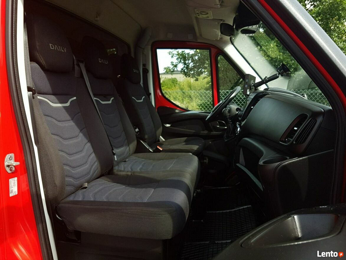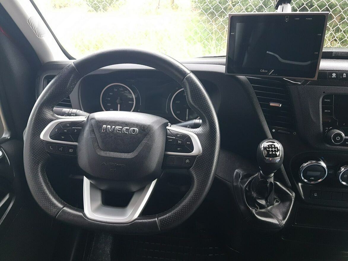 Klimatyzacja automatyczna – klimatronik. Tempomat. Ogrzewanie postojowe – Eberspacher. Wspomaganie kierownicy. Centralny zamek. Immobilizer. Komputer pokładowy. Poduszka powietrzna kierowcy. ABS. ASR. Elektryczne lusterka. Elektryczne szyby. Podgrzewane lusterka. Oryginalne Iveco Radio usb, aux + Bluetooth. Halogeny – funkcja doświetlania zakrętów. System kontroli trakcji. Asystent kierowcy. Automatyczny włącznik świateł – światła jazdy dziennej Led. Klimatyzowany schowek. Zegarek. Termometr zewnętrzny. Rozkładany stolik z fotela pasażera. Pneumatyczny fotel kierowcy. Regulacja wysokości fotela kierowcy. Regulacja kąta nachylenia siedziska fotela kierowcy. Regulacja lędźwiowa fotela kierowcy. Regulacja wysokości świateł. Regulacja położenia kierownicy. Regulacja wysokości pasów bezpieczeństwa. Podłokietnik. Schowki w desce rozdzielczej. Skórzana kierownica. Szerokie lusterka. Obrotomierz. Światła boczne obrysowe. Owiewki boczne kabiny. Kierunkowskazy w lusterkach. Schowki w bocznych drzwiach. Schowek pod fotelem pasażera. Srebrne dodatki. Koła R16C. Kabina 3 osoby. Tył koła bliźniaki. Koło zapasowe. Atermiczne szyby.