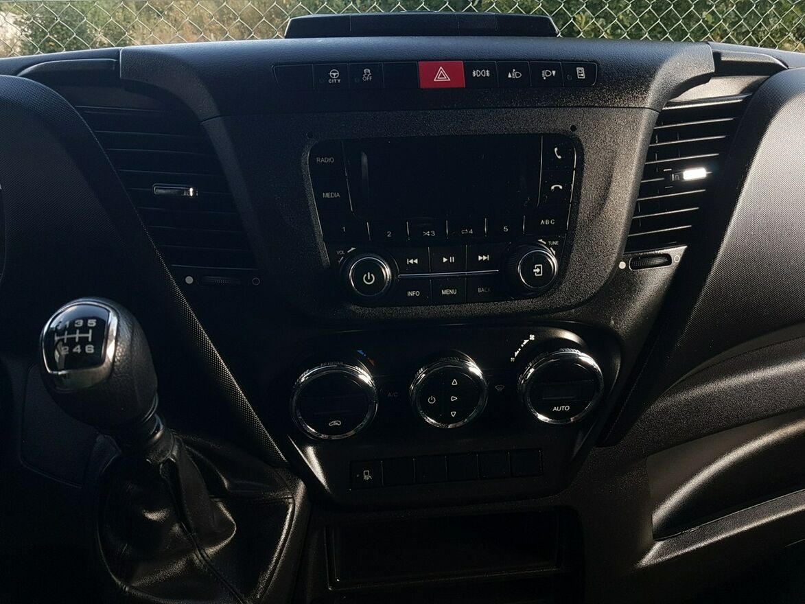 Klimatyzacja automatyczna – klimatronik. Tempomat. Ogrzewanie postojowe – Eberspacher. Wspomaganie kierownicy. Centralny zamek. Immobilizer. Komputer pokładowy. Poduszka powietrzna kierowcy. ABS. ASR. Elektryczne lusterka. Elektryczne szyby. Podgrzewane lusterka. Oryginalne Iveco Radio usb, aux + Bluetooth. Halogeny - funkcja doświetlania zakrętów. System kontroli trakcji. Asystent kierowcy. Funkcja City. Automatyczny włącznik świateł – światła jazdy dziennej Led. Obrotomierz. Klimatyzowany schowek. Zegarek. Termometr zewnętrzny. Wielofunkcyjna kierownica. Rozkładany stolik z fotela pasażera. Pneumatyczny fotel kierowcy. Regulacja wysokości fotela kierowcy. Regulacja kąta nachylenia siedziska fotela kierowcy. Regulacja lędźwiowa fotela kierowcy. Regulacja wysokości świateł. Regulacja położenia kierownicy. Regulacja wysokości pasów bezpieczeństwa. Podłokietnik kierowcy. Schowki w desce rozdzielczej. Skórzana kierownica. Szerokie lusterka. Światła boczne obrysowe. Owiewki bone kabiny. Kierunkowskazy w lusterkach. Schowki w bocznych drzwiach. Schowek pod fotelem pasażera. Srebrne dodatki. Koła R16C. Kabina 3 osoby. Tył koła bliźniaki. Koło zapasowe. Atermiczne szyby.