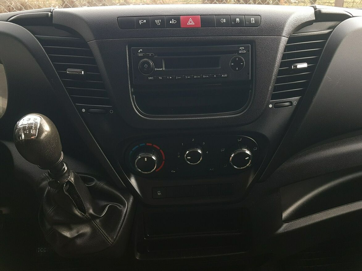Klimatyzacja. Wspomaganie kierownicy. Centralny zamek. Immobilizer. Komputer pokładowy. Poduszka powietrzna kierowcy. ABS. ASR. Elektryczne lusterka. Elektryczne szyby. Podgrzewane lusterka. System kontroli trakcji. Oryginalne radio Iveco cd, usb, aux ze sterowaniem przy kierownicy + Bluetooth. Zegarek. Schowki w desce rozdzielczej. Skórzana kierownica. Wielofunkcyjna kierownica. Pneumatyczny fotel kierowcy. Podłokietnik kierowcy. Regulacja wysokości fotela kierowcy. Regulacja kąta nachylenia siedziska fotela kierowcy. Regulacja lędźwiowa fotela kierowcy. Regulacja wysokości świateł. Regulacja wysokości pasów bezpieczeństwa. Klimatyzowany schowek. Obrotomierz. Światła boczne obrysowe. Kierunkowskazy w lusterkach. Schowki w bocznych drzwiach. Automatyczny włącznik świateł – światła jazdy dziennej. Szerokie lusterka. Owiewka dachowa + boczne. Schowek pod fotelem pasażera. Koła R16C. Kabina 3 osoby. Trzecie światło stop. Koło zapasowe. Atermiczne szyby.