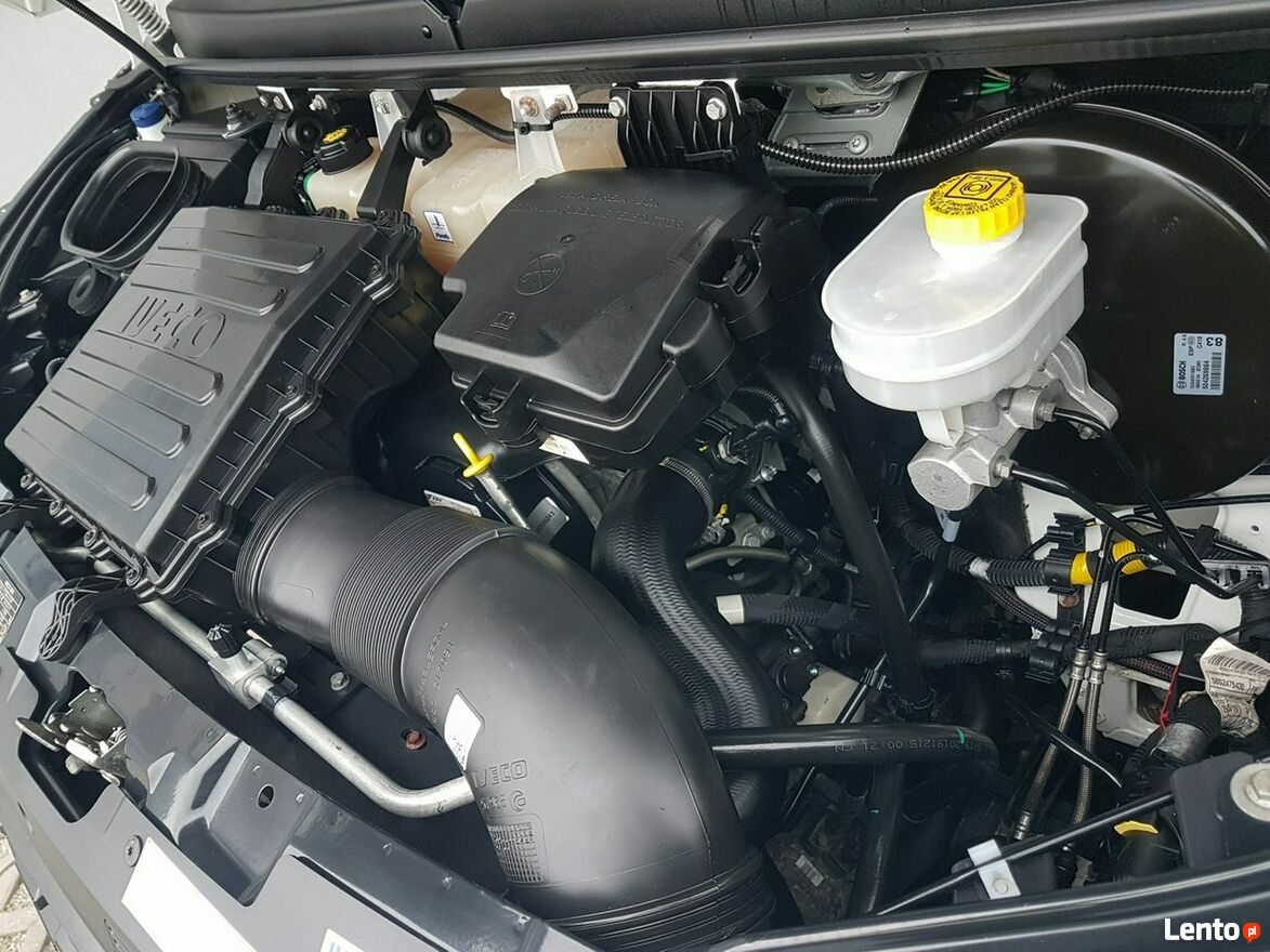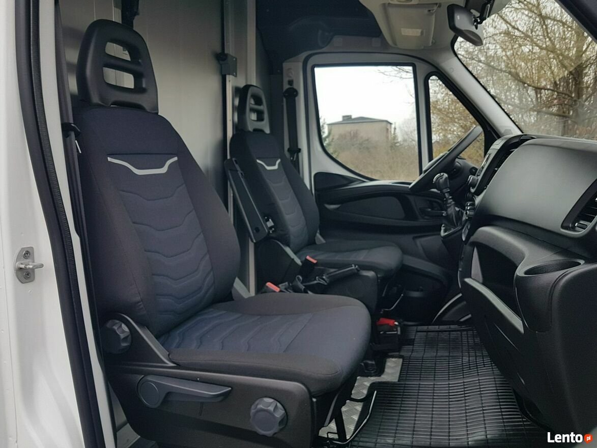 Klimatyzacja. Poduszka powietrzna kierowcy. Wspomaganie kierownicy. Centralny zamek. Immobilizer. ABS. ASR. Komputer pokładowy. Elektryczne lusterka. Elektryczne szyby. Podgrzewane lusterka. Obrotomierz. Oryginalne Iveco Radio usb, aux + Bluetooth. Funkcja City. System Start/Stop. System automatycznego zamykania drzwi. Kolorowa kamera cofania w lusterku wewnętrznym. Klimatyzowany schowek. Termometr zewnętrzny. Zegarek. Szerokie lusterka. Kierunkowskazy w lusterkach. Wielofunkcyjna kierownica. Schowki w desce rozdzielczej. Regulacja wysokości świateł. Regulacja położenia kierownicy. Podłokietnik fotela kierowcy. Regulacja lędźwiowa fotela kierowcy. Regulacja wysokości fotela kierowcy + pasażera. Regulacja kąta nachylenia siedziska fotela kierowcy + pasażera. Regulacja wysokości pasów bezpieczeństwa. Schowki w bocznych drzwiach. Automatyczny włącznik świateł – światła jazdy dziennej. Światła boczne obrysowe. Owiewka dachowa + boczne. Tylny podest wejścia na kontener. Koła R16C. Kabina 2 osoby. Koło zapasowe. Trzecie światło stop. Atermiczne szyby.
