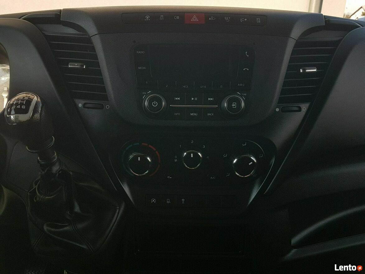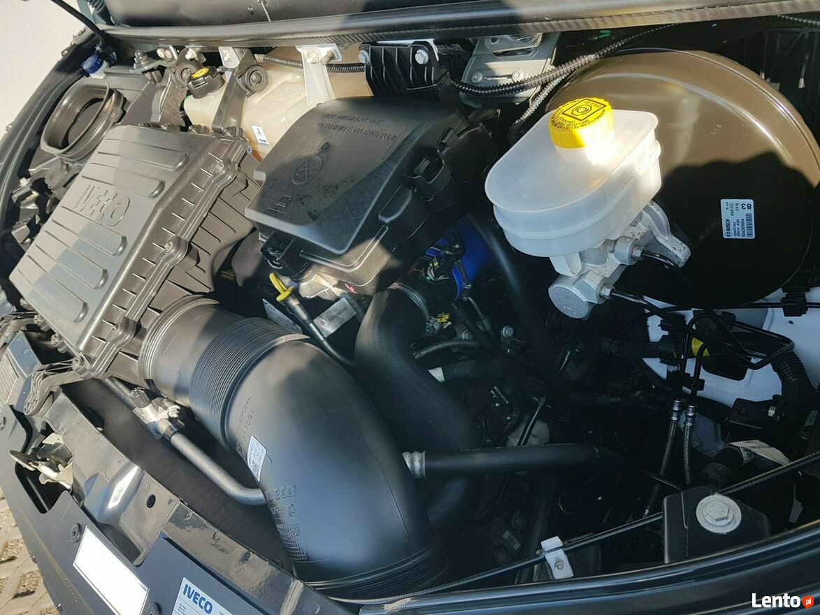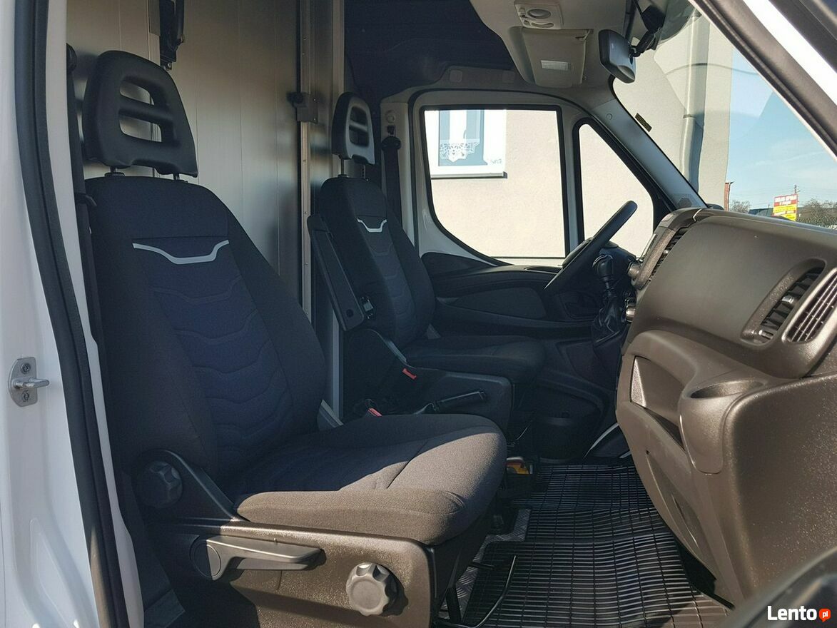 Klimatyzacja. Poduszka powietrzna kierowcy. Wspomaganie kierownicy. Centralny zamek. Immobilizer. ABS. ASR. Komputer pokładowy. Elektryczne lusterka. Elektryczne szyby. Podgrzewane lusterka. Obrotomierz. Oryginalne Iveco Radio usb, aux + Bluetooth. Funkcja City. System Start/Stop. System automatycznego zamykania drzwi. Klimatyzowany schowek. Termometr zewnętrzny. Zegarek. Szerokie lusterka. Kierunkowskazy w lusterkach. Wielofunkcyjna kierownica. Schowki w desce rozdzielczej. Regulacja wysokości świateł. Regulacja położenia kierownicy. Podłokietnik fotela kierowcy. Regulacja lędźwiowa fotela kierowcy. Regulacja wysokości fotela kierowcy + pasażera. Regulacja kąta nachylenia siedziska fotela kierowcy + pasażera. Regulacja wysokości pasów bezpieczeństwa. Schowki w bocznych drzwiach. Automatyczny włącznik świateł – światła jazdy dziennej. Światła boczne obrysowe. Owiewka dachowa + boczne. Tylny podest wejścia na kontener. Koła R16C. Kabina 2 osoby. Koło zapasowe. Trzecie światło stop. Atermiczne szyby.