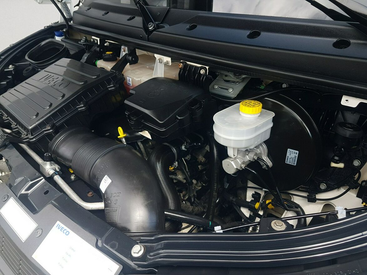Klimatyzacja. Poduszka powietrzna kierowcy. Wspomaganie kierownicy. Centralny zamek. Immobilizer. ABS. ASR. Komputer pokładowy. Elektryczne lusterka. Elektryczne szyby. Podgrzewane lusterka. Obrotomierz. Oryginalne Iveco Radio usb, aux + Bluetooth. Funkcja City. System Start/Stop. System automatycznego zamykania drzwi. Kolorowa kamera cofania w lusterku wewnętrznym. Klimatyzowany schowek. Termometr zewnętrzny. Zegarek. Szerokie lusterka. Kierunkowskazy w lusterkach. Wielofunkcyjna kierownica. Schowki w desce rozdzielczej. Regulacja wysokości świateł. Regulacja położenia kierownicy. Podłokietnik fotela kierowcy. Regulacja lędźwiowa fotela kierowcy. Regulacja wysokości fotela kierowcy + pasażera. Regulacja kąta nachylenia siedziska fotela kierowcy + pasażera. Regulacja wysokości pasów bezpieczeństwa. Schowki w bocznych drzwiach. Automatyczny włącznik świateł – światła jazdy dziennej. Światła boczne obrysowe. Owiewka dachowa + boczne. Tylny podest wejścia na kontener. Koła R16C. Kabina 2 osoby. Koło zapasowe. Trzecie światło stop. Atermiczne szyby.