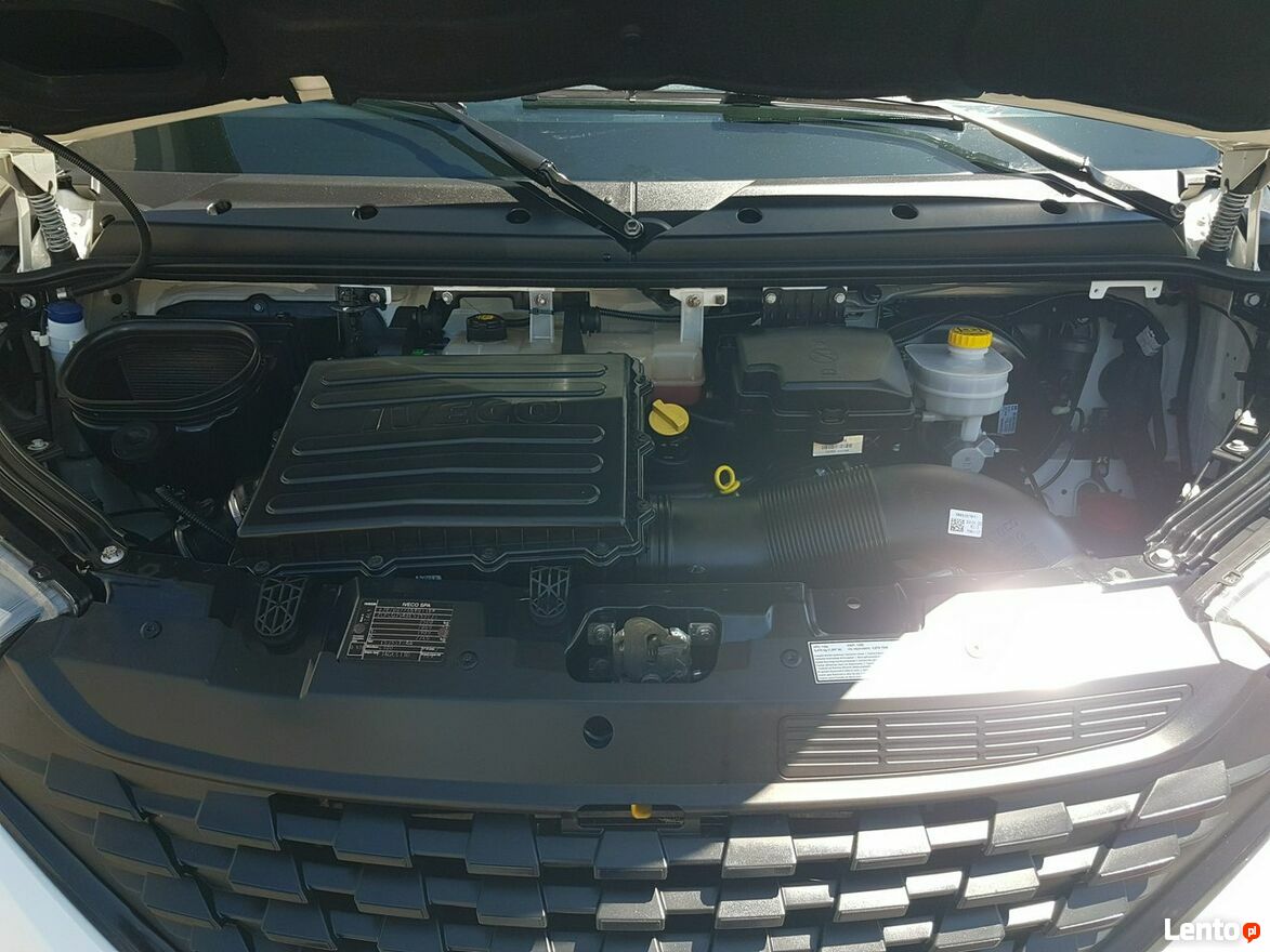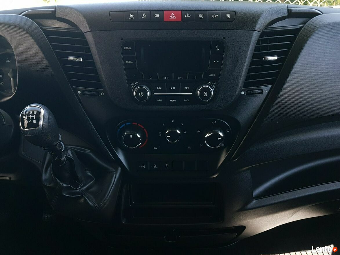 Klimatyzacja. Poduszka powietrzna kierowcy. Wspomaganie kierownicy. Centralny zamek. Immobilizer. ABS. ASR. Komputer pokładowy. Elektryczne lusterka. Elektryczne szyby. Podgrzewane lusterka. Obrotomierz. Oryginalne Iveco Radio usb, aux + Bluetooth. Funkcja City. System Start/Stop. System automatycznego zamykania drzwi. Kolorowa kamera cofania w lusterku wewnętrznym. Klimatyzowany schowek. Termometr zewnętrzny. Zegarek. Szerokie lusterka. Kierunkowskazy w lusterkach. Wielofunkcyjna kierownica. Schowki w desce rozdzielczej. Regulacja wysokości świateł. Regulacja położenia kierownicy. Podłokietnik fotela kierowcy. Regulacja lędźwiowa fotela kierowcy. Regulacja wysokości fotela kierowcy + pasażera. Regulacja kąta nachylenia siedziska fotela kierowcy + pasażera. Regulacja wysokości pasów bezpieczeństwa. Schowki w bocznych drzwiach. Automatyczny włącznik świateł – światła jazdy dziennej. Światła boczne obrysowe. Owiewka dachowa + boczne. Tylny podest wejścia na kontener. Koła R16C. Kabina 2 osoby. Koło zapasowe. Trzecie światło stop. Atermiczne szyby.