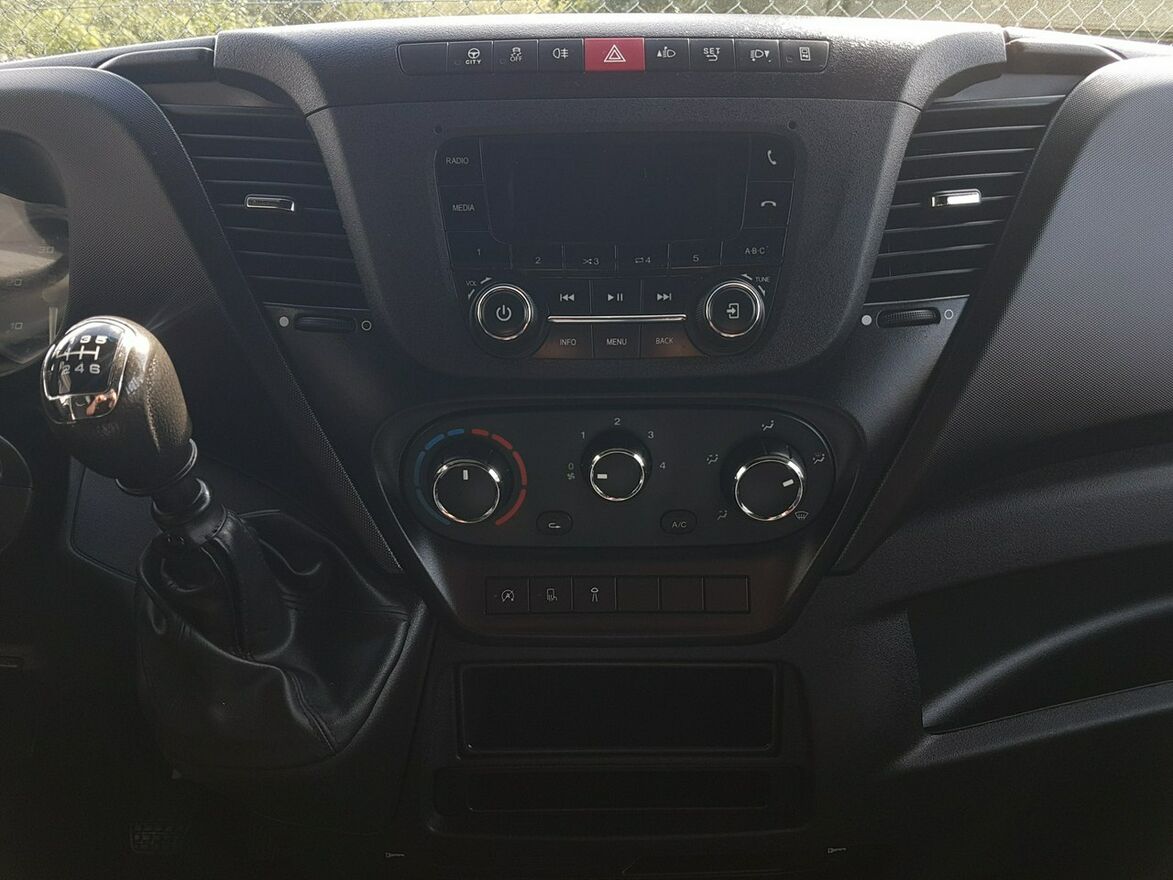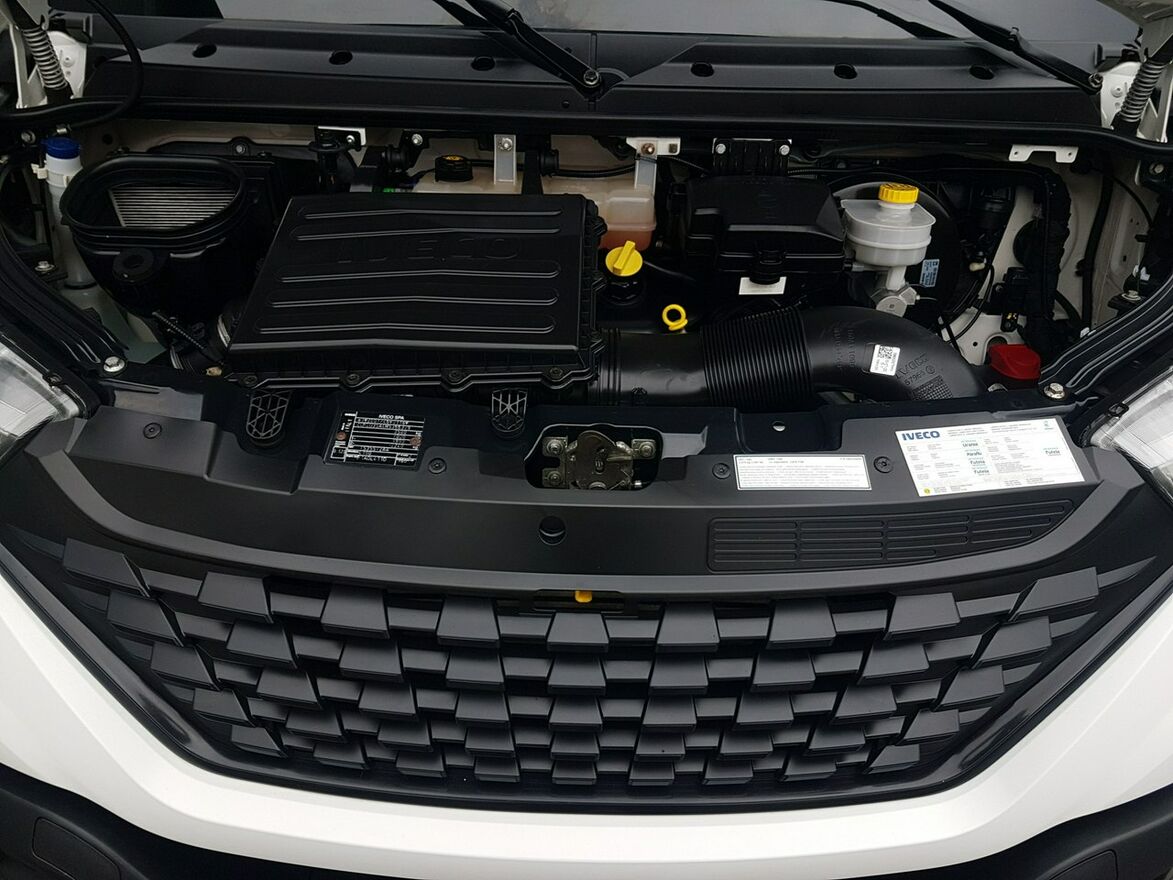 Klimatyzacja. Poduszka powietrzna kierowcy. Wspomaganie kierownicy. Centralny zamek. Immobilizer. ABS. ASR. Komputer pokładowy. Elektryczne lusterka. Elektryczne szyby. Podgrzewane lusterka. Obrotomierz. Oryginalne Iveco Radio usb, aux + Bluetooth. Funkcja City. System Start/Stop. System automatycznego zamykania drzwi. Kolorowa kamera cofania w lusterku wewnętrznym. Klimatyzowany schowek. Termometr zewnętrzny. Zegarek. Szerokie lusterka. Kierunkowskazy w lusterkach. Wielofunkcyjna kierownica. Schowki w desce rozdzielczej. Regulacja wysokości świateł. Regulacja położenia kierownicy. Podłokietnik fotela kierowcy. Regulacja lędźwiowa fotela kierowcy. Regulacja wysokości fotela kierowcy + pasażera. Regulacja kąta nachylenia siedziska fotela kierowcy + pasażera. Regulacja wysokości pasów bezpieczeństwa. Schowki w bocznych drzwiach. Automatyczny włącznik świateł – światła jazdy dziennej. Światła boczne obrysowe. Owiewka dachowa + boczne. Tylny podest wejścia na kontener. Koła R16C. Kabina 2 osoby. Koło zapasowe. Trzecie światło stop. Atermiczne szyby.