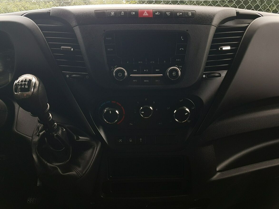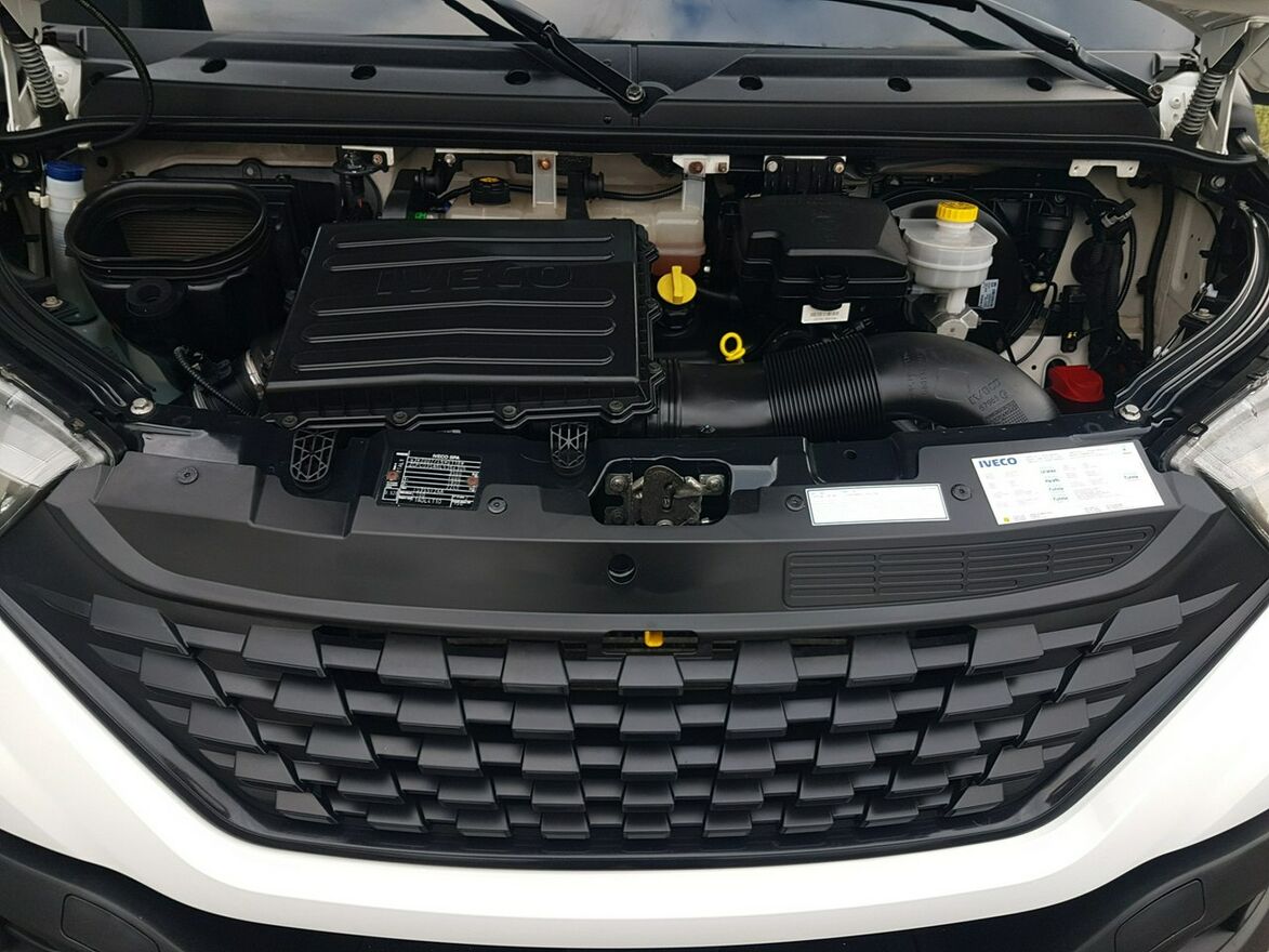 Klimatyzacja. Poduszka powietrzna kierowcy. Wspomaganie kierownicy. Centralny zamek. Immobilizer. ABS. ASR. Komputer pokładowy. Elektryczne lusterka. Elektryczne szyby. Podgrzewane lusterka. Obrotomierz. Oryginalne Iveco Radio usb, aux + Bluetooth. Funkcja City. System Start/Stop. System automatycznego zamykania drzwi. Kolorowa kamera cofania w lusterku wewnętrznym. Klimatyzowany schowek. Termometr zewnętrzny. Zegarek. Szerokie lusterka. Kierunkowskazy w lusterkach. Wielofunkcyjna kierownica. Schowki w desce rozdzielczej. Regulacja wysokości świateł. Regulacja położenia kierownicy. Podłokietnik fotela kierowcy. Regulacja lędźwiowa fotela kierowcy. Regulacja wysokości fotela kierowcy + pasażera. Regulacja kąta nachylenia siedziska fotela kierowcy + pasażera. Regulacja wysokości pasów bezpieczeństwa. Schowki w bocznych drzwiach. Automatyczny włącznik świateł – światła jazdy dziennej. Światła boczne obrysowe. Owiewka dachowa + boczne. Tylny podest wejścia na kontener. Koła R16C. Kabina 2 osoby. Koło zapasowe. Trzecie światło stop. Atermiczne szyby.