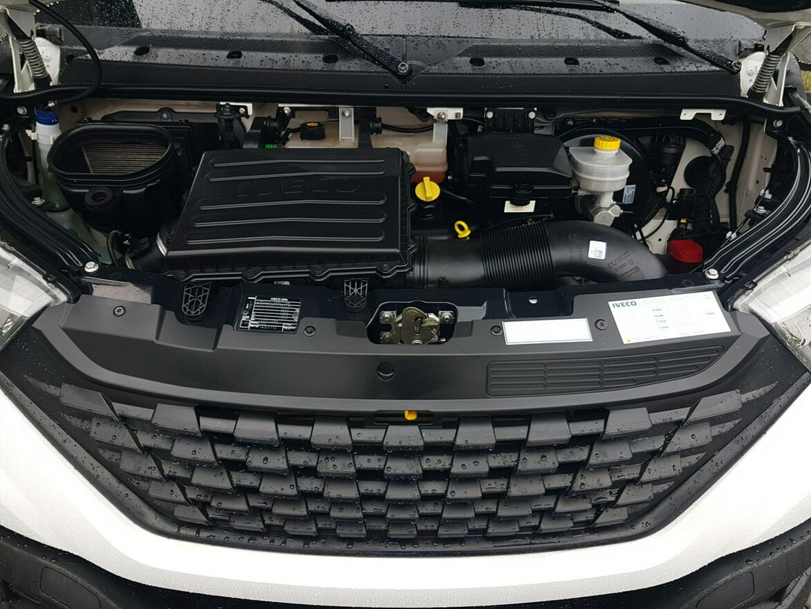 Klimatyzacja. Poduszka powietrzna kierowcy. Wspomaganie kierownicy. Centralny zamek. Immobilizer. ABS. ASR. Komputer pokładowy. Elektryczne lusterka. Elektryczne szyby. Podgrzewane lusterka. Obrotomierz. Oryginalne Iveco Radio usb, aux + Bluetooth. Funkcja City. System Start/Stop. System automatycznego zamykania drzwi. Kolorowa kamera cofania w lusterku wewnętrznym. Klimatyzowany schowek. Termometr zewnętrzny. Zegarek. Szerokie lusterka. Kierunkowskazy w lusterkach. Wielofunkcyjna kierownica. Schowki w desce rozdzielczej. Regulacja wysokości świateł. Regulacja położenia kierownicy. Podłokietnik fotela kierowcy. Regulacja lędźwiowa fotela kierowcy. Regulacja wysokości fotela kierowcy + pasażera. Regulacja kąta nachylenia siedziska fotela kierowcy + pasażera. Regulacja wysokości pasów bezpieczeństwa. Schowki w bocznych drzwiach. Automatyczny włącznik świateł – światła jazdy dziennej. Światła boczne obrysowe. Owiewka dachowa + boczne. Tylny podest wejścia na kontener. Koła R16C. Kabina 2 osoby. Koło zapasowe. Trzecie światło stop. Atermiczne szyby.