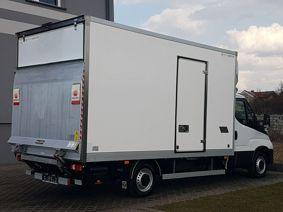 IVECO 35-160 DAILY 3,0 16V HPI EURO-6E DIESEL 35S16 KONTENER 8 EURO PALET 4,29x2,23x2,23 WINDA ZAŁADUNKOWA DHOLLANDIA KLIMATYZACJA 6-BIEGÓW MANUAL DMC : 3500 KG KATEGORIA PRAWA JAZDY: "B".Zabudowa: kontener 8 EURO PALET. Wymiary zabudowy: Długość: 4,29 m wewnątrz. Szerokość: 2,23 m wewnątrz. Wysokość: 2,23 m wewnątrz. Pojemność zabudowy: 21,49 m3. Zabudowa otwierana: Winda załadunkowa tył + drzwi boczne. Wysuwany stopień wejścia bok kontenera. Oświetlenie wewnątrz zabudowy. Uchwyty do mocowania ładunku. Aluminiowe boczne osłony zabudowy. Plastikowe tylne nadkola.