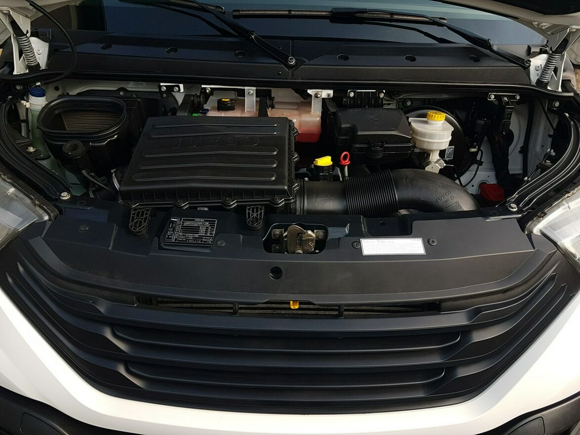 Klimatyzacja. Wspomaganie kierownicy. Centralny zamek. Immobilizer. Komputer pokładowy. Poduszka powietrzna kierowcy. ABS. ASR. Elektryczne lusterka. Elektryczne szyby. Podgrzewane lusterka. System kontroli trakcji. Oryginalne radio Iveco USB Aux ze sterowaniem przy kierownicy + Bluetooth. Kolorowa kamera cofania. Wielofunkcyjna kierownica. Zegarek. Funkcja City. System Eco. Fotel kierowcy hi-adaptive. Schowki w desce rozdzielczej. Pneumatyczny fotel kierowcy. Podłokietnik fotela kierowcy. Regulacja wysokości fotela kierowcy. Regulacja kąta nachylenia siedziska fotela kierowcy. Regulacja lędźwiowa fotela kierowcy. Regulacja wysokości świateł. Regulacja wysokości pasów bezpieczeństwa. Klimatyzowany schowek. Obrotomierz. Szerokie lusterka. Światła boczne obrysowe. Kierunkowskazy w lusterkach. Schowki w bocznych drzwiach. Automatyczny włącznik świateł – światła jazdy dziennej. Owiewka dachowa + boczne. Schowek pod fotelem pasażera. Koła R16C. Kabina 3 osoby. Trzecie światło stop. Koło zapasowe. Atermiczne szyby.