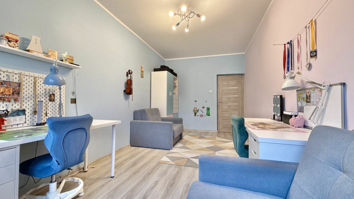 Dodatkowym atutem jest duża zabudowana szafa, która zapewnia wygodne miejsce do przechowywania.