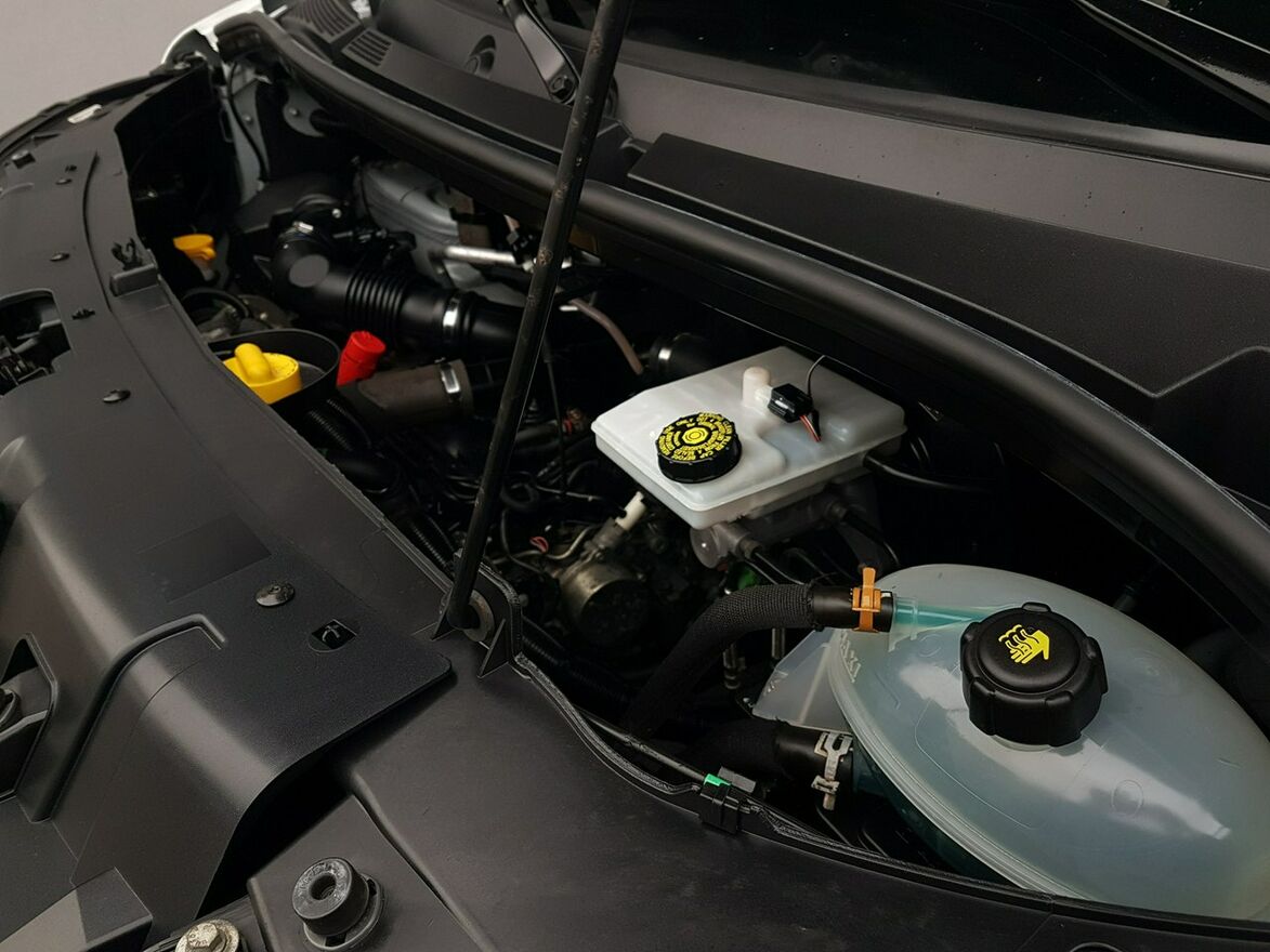 Klimatyzacja. Wspomaganie kierownicy. Centralny zamek. Immobilizer. Komputer pokładowy. ABS. Poduszka powietrzna kierowcy. System kontroli trakcji. Elektryczne lusterka. Elektryczne szyby. Podgrzewane lusterka. Radio mp3, usb,aux Renault ze sterowaniem przy kierownicy + Bluetooth. Kolorowa kamera cofania. System : droga utwardzona – droga gruntowa. System ECO. Regulacja wysokości świateł. Regulacja położenia kierownicy. Regulacja wysokości fotela kierowcy. Regulacja lędźwiowa fotela kierowcy. Regulacja wysokości pasów bezpieczeństwa. Schowki w przednich drzwiach. Schowek pod fotelem pasażera. Kierunkowskazy w lusterkach. Szerokie lusterka. Zegarek. Termometr zewnętrzny. Obrotomierz. Podłokietnik kierowcy. Stolik rozkładany z fotela pasażera. Schowki w desce rozdzielczej. Wysuwana półka z deski ropzdzielczej. Automatyczny włącznik świateł – światła jazdy dziennej Led. Niklowe dodatki. Skórzana kierownica. Koło zapasowe. Kabina 3 osoby. Trzecie światło stop. Plastikowe tylne nadkola. Owiewka dachowa + boczne. Koła R16C. Światła boczne obrysowe. Atermiczne szyby.