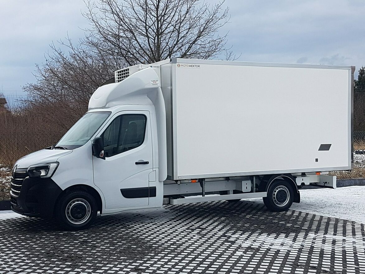 RENAULT MASTER 2,3 DCI-146 KM EURO-6E DIESEL 6-BIEGÓW MANUAL F3500 CHŁODNIA MROŹNIA 8 EURO PALET 4,21x2,10x2,01 AGREGAT THERMO KING V-500 MAX ZASILANY Z SILNIKA + ELEKTRYCZNIE STACJONARNIE FUNKCJA GRZANIA IZOTERMA KONTENER KLIMATYZACJA DMC: 3500 KG KATEGORIA PRAWA JAZDY: "B".Rok produkcji: 2022. Data pierwszej rejestracji: 16.09.2022 rok.