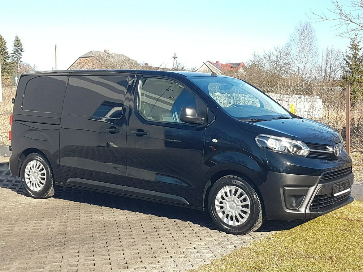 Klimatyzacja. Tempomat. Webasto – ogrzewanie postojowe. Wspomaganie kierownicy. Centralny zamek. Immobilizer. ABS. ESP. Komputer pokładowy. 2 x poduszka powietrzna. Możliwość wyłączenia poduszki powietrznej pasażera. Oryginalne duże radio Toyota usb + Bluetooth ze sterowaniem przy kierownicy. Parktronik – czujniki parkowania tył. Elektryczne lusterka. Elektryczne szyby. Podgrzewane lusterka. Obrotomierz. System kontroli trakcji. Schowki w bocznych drzwiach. System start/stop. Podłokietnik kierowcy. Regulacja położenia kierownicy. Regulacja wysokości świateł. Regulacja wysokości fotela kierowcy. Regulacja wysokości pasów bezpieczeństwa. Zegarek. Termometr zewnętrzny. Składany kluczyk z podziałem na otwarcie przestrzeni bagażowej lub kabiny pasażera. Drzwi boczne przesuwne. Trzecie światło stop. Drzwi tył skrzydełkowe. Oświetlenie przestrzeni ładunkowej. Uchwyty do mocowania ładunku. Smart Cargo otwierana przegroda przestrzeni ładunkowej, unoszony prawy fotel – możliwość przewozu dłuższych elementów. Kanapa pasażera dwumiejscowa. Stolik rozkładany z fotela pasażera. Schowek pod fotelem pasażera. Lusterko wsteczne wewnętrzne. Pełnowymiarowe koło zapasowe. Schowki w desce rozdzielczej. Automatyczny włącznik świateł - światła jazdy dziennej. Koła R16C. Atermiczne szyby.